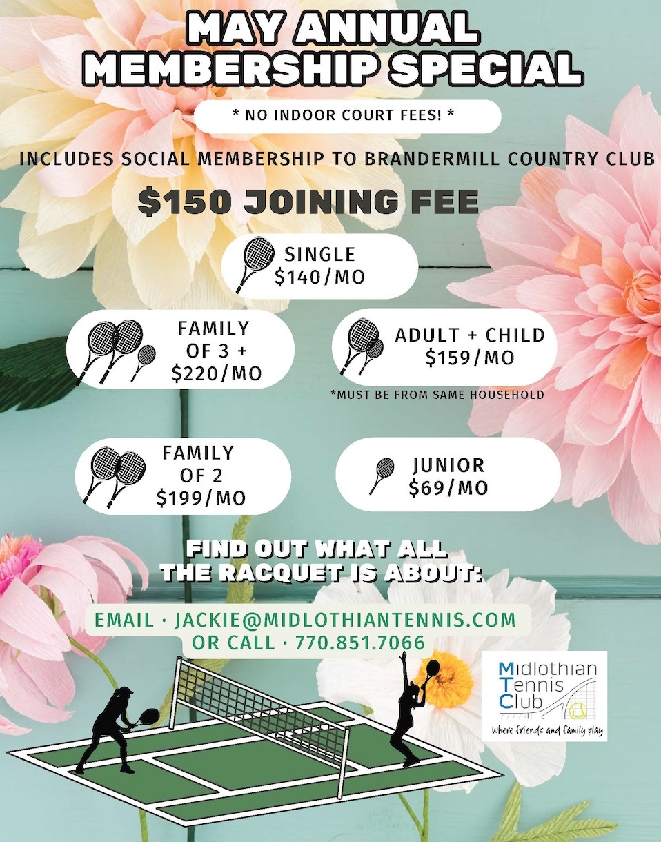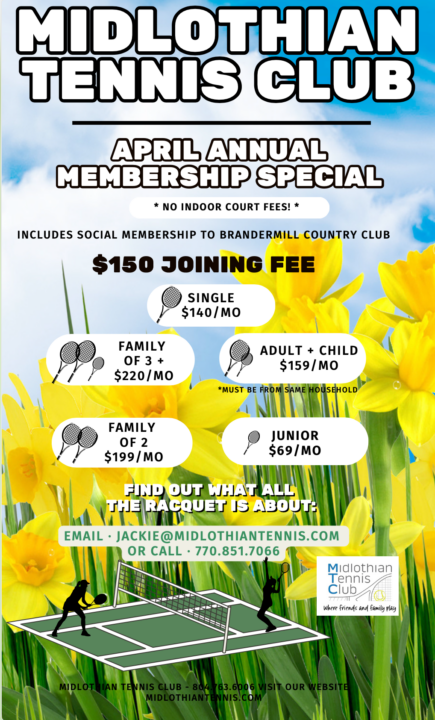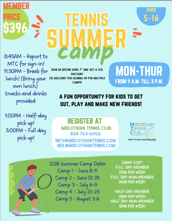 MERRY MINGLE! RSVP today if you haven’t already! You can sign up at the front desk, or email us at info@midlothiantennis.com or Jackie@midlothiantennis.com.