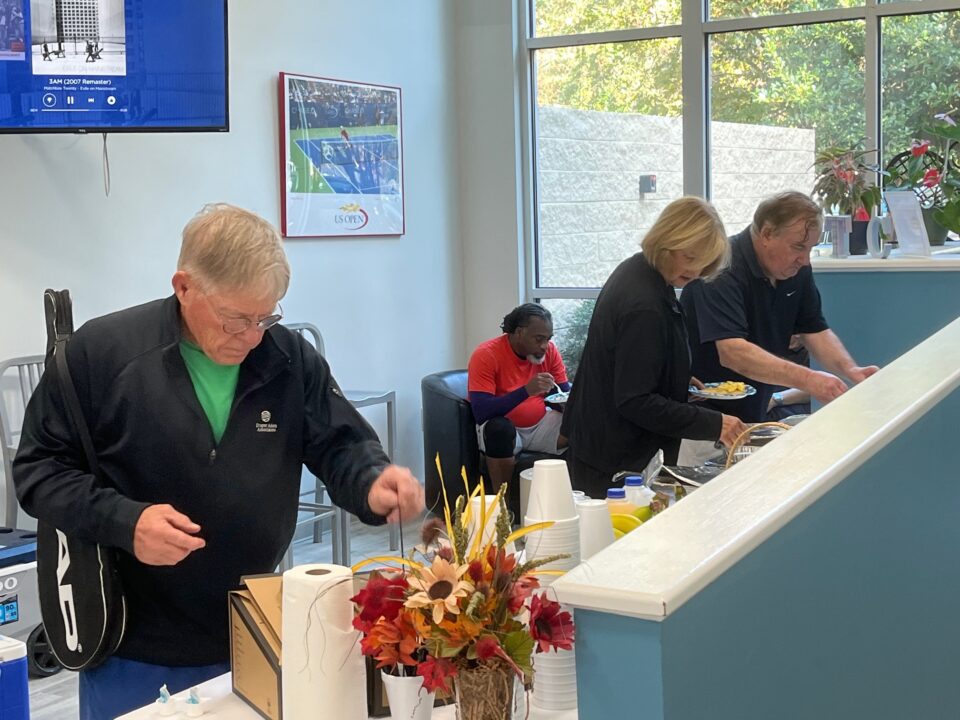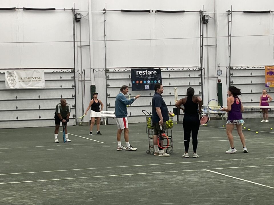 After Members enjoyed the delicious food, many took part in the FREE clinic hosted by our fantastic pros. Many thanks to Ken, Lynn, Neil & Colin for teaching some new tricks and winning shots. We certainly can’t forget our amazing sponsors that set up on site to join in the festivities! Restore Hyper Wellness visited with members and generously offered FREE compression therapy which was a real treat. Elemental Myofascial also offered FREE hands on demos and education to help relieve the aches and pains us tennis players experience.